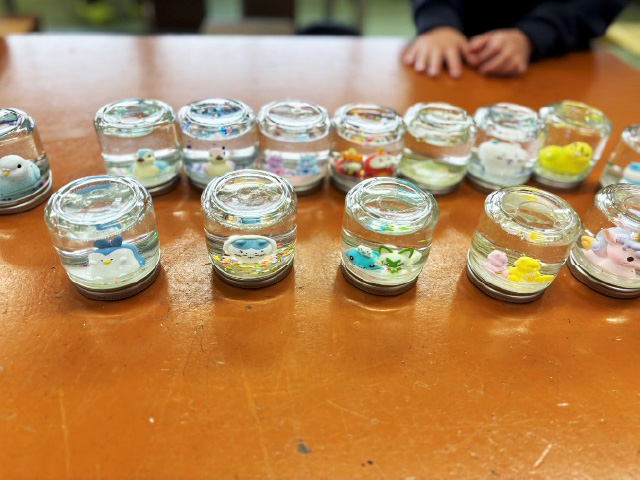 鴨志田緑小学校放課後キッズクラブでは、毎月のプログラムとして、キラキラオイル、スノードーム、牛乳パックや紙皿、紙コップなどを使って風車やロケットつくり、プラバンなどの工作を実施しています。校庭では、大学生スタッフの先生と、思いっきりドッジボールや野球、サッカーをします。地域の方による野球教室や、お話の部屋、チアダンス教室、夏休みに行うビニールプールを出しての水遊び、秋に行うキッズまつりでは、スーパーボールすくいや的あて、輪投げ、ストラックアウトなどのゲームをして楽しみます。放課後の短い時間ですが、子どもたちがいろいろなことを楽しく体験できるよう企画しています。