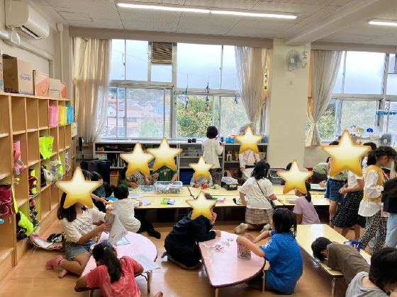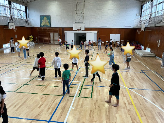 室内では色々なおもちゃで遊んだり、校庭や体育館などでは思いっきり体を動かして活動しています。いつもキッズにはこどもたちの元気な声が響いています。