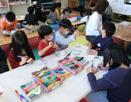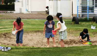 小山台小学校放課後キッズクラブでは、ゲーム、ブロック、シルバニアなどをお友達と楽しんだり、宿題、折紙や空き箱を使った工作、パズルなどを一人で黙々と取り組んだりと自由に過ごしています。また、芝生の校庭や体育館でも、サッカーや鬼ごっこ、砂遊びなど元気に走り回っています。