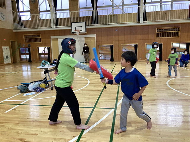 山王台小学校の文化スポーツクラブのスポーツチャンバラの体験会に参加させていただきました。