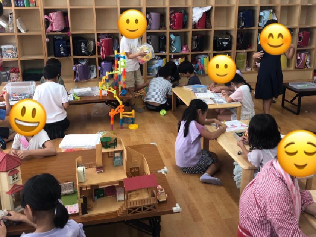 山田小学校放課後キッズクラブでは、1年生から3年生までの児童が多く利用されています。キッズルームでは、学年関係なくレゴ・ラキュー・ままごと・カードゲーム等々し楽しく過ごしております。