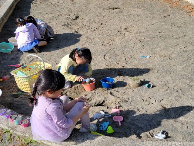 天気の良い時は、校庭に出てボール遊び・縄跳び・砂場遊び・スカイキャッチャー・一輪車等々し思い切り遊んでいます。