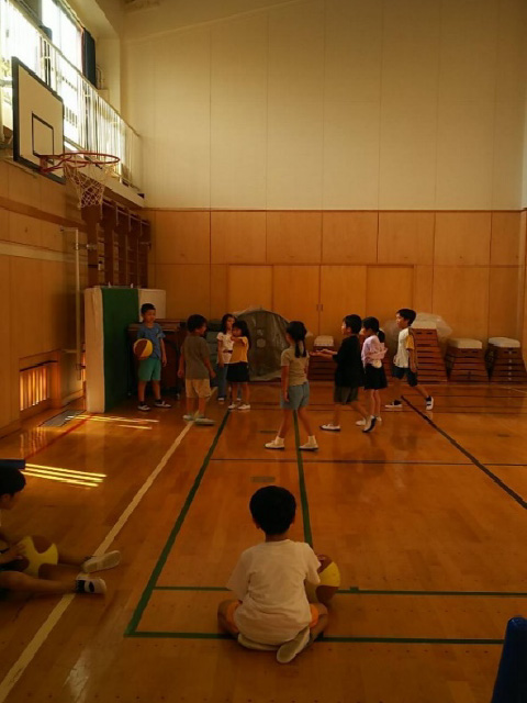 天気が悪い時は、体育館にてジャンピングボール・ボール遊び等々して遊んでいます。